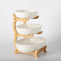 Оптовая продажа Белая трехуровневая Ваза для фруктов с бамбуковой подставкой